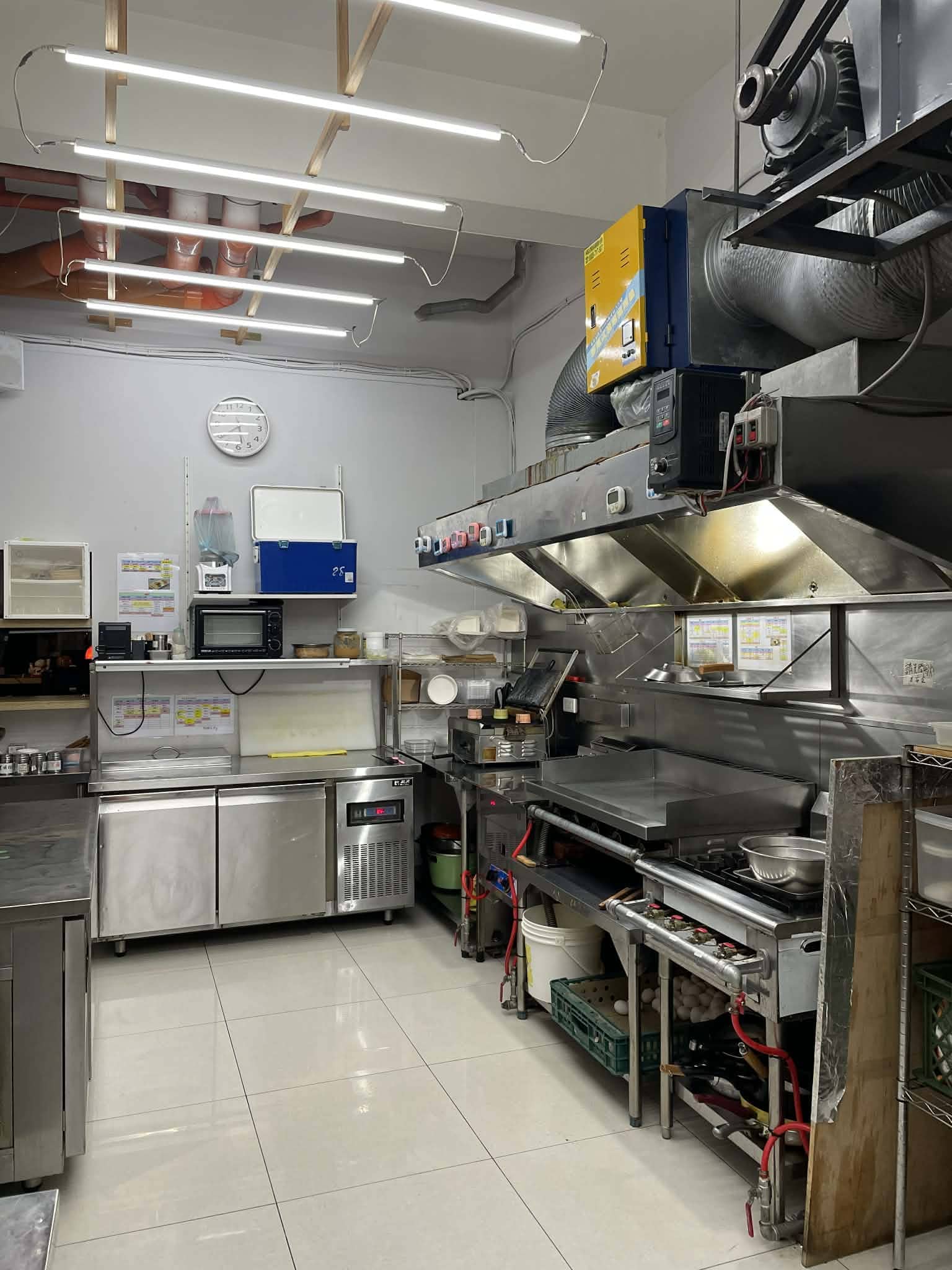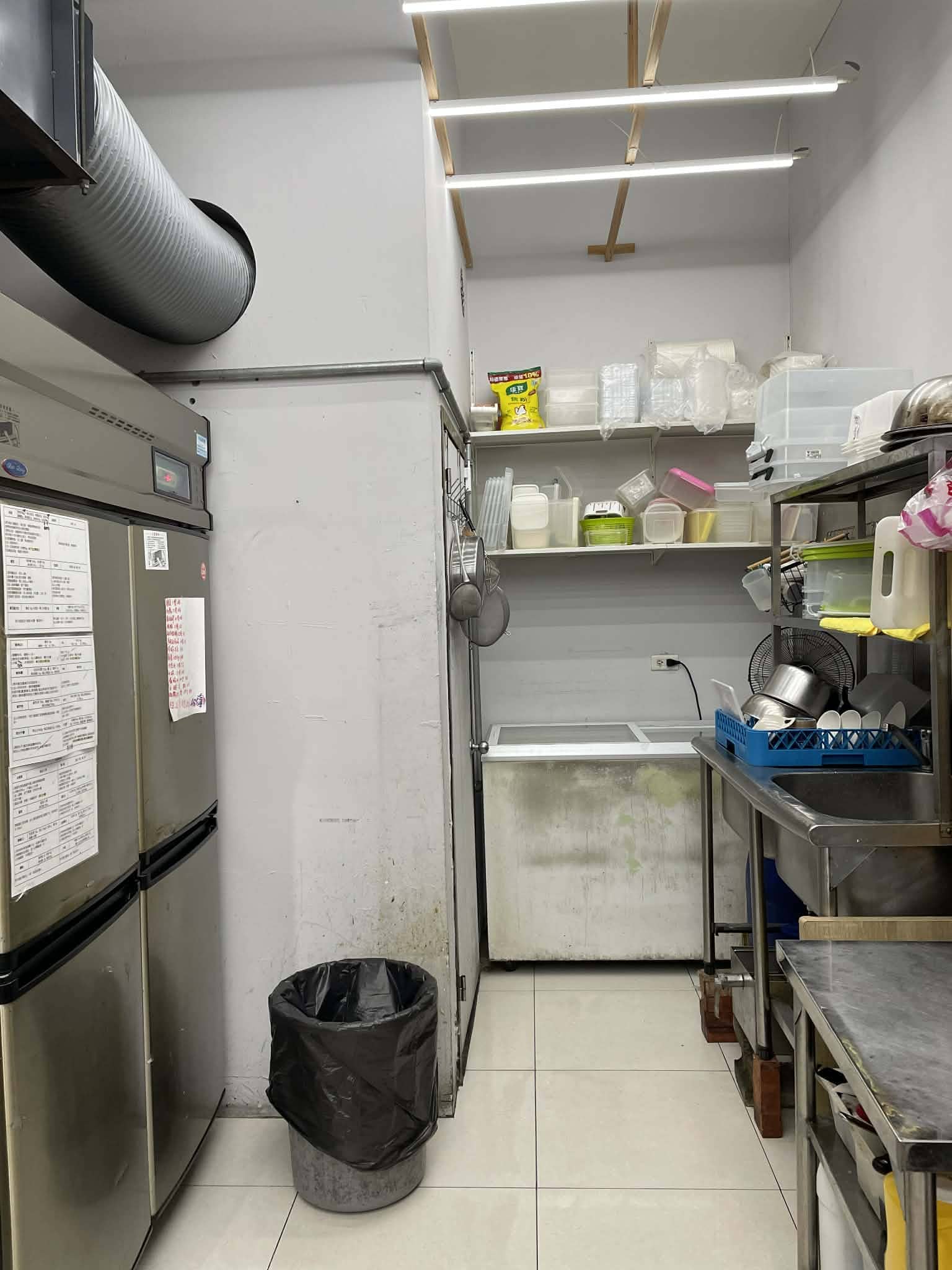 靜電機抽風設備*1、四口爐*1、煎台、炸物爐具、麵包熱壓機、烤箱、四門冰箱*1、冷凍櫃*1、工作台冰箱*2、可調冷凍及冷藏冰箱*1、-24度C全冷凍冰箱、咖啡機、咖啡磨豆機、萃茶機、封口機、工作台冰箱*1、小型收銀機、熱水飲水機、冰塊製冰機、音響主機、喇叭*2、冷氣3台、輕鋼架風扇*5、倉庫置物架等等(依現場狀況為主)